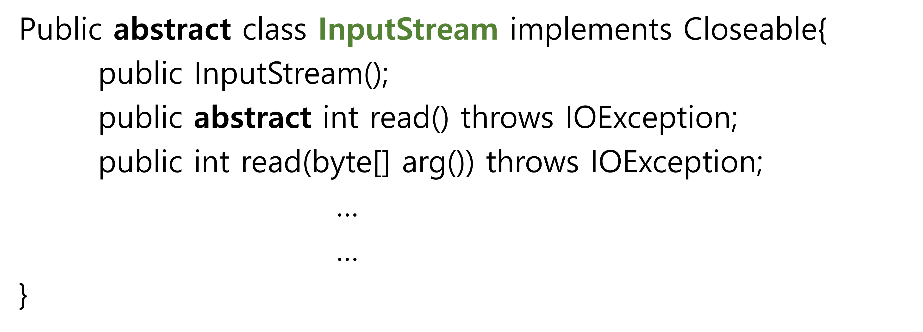 -ByteStream중 입력을 받는 class들은 InputStream 추상클래스를 상속받아 만들어진다. 모두 InputStream로 끝난다.
