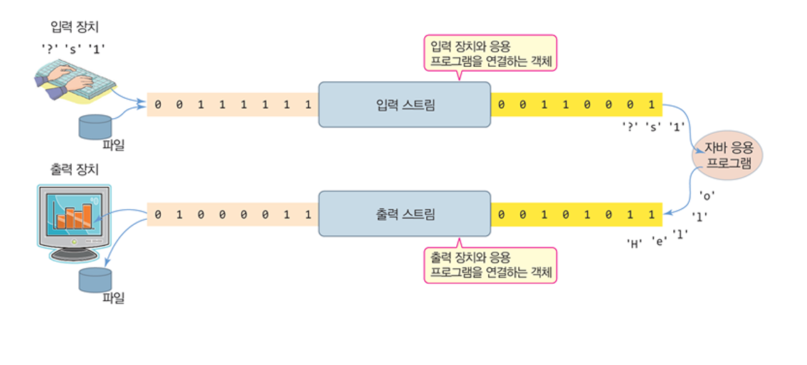 기본적으로 자바의 입출력은 Stream 기반이다. 컴퓨터 공학에서 스트림이란 연속적인 데이터의 흐름이나 데이터를 전송하는 소프트웨어 모듈을 의미한다. 다음 그림과 같이 자바는 스트림을 통해 입력/출력을 받게 된다.