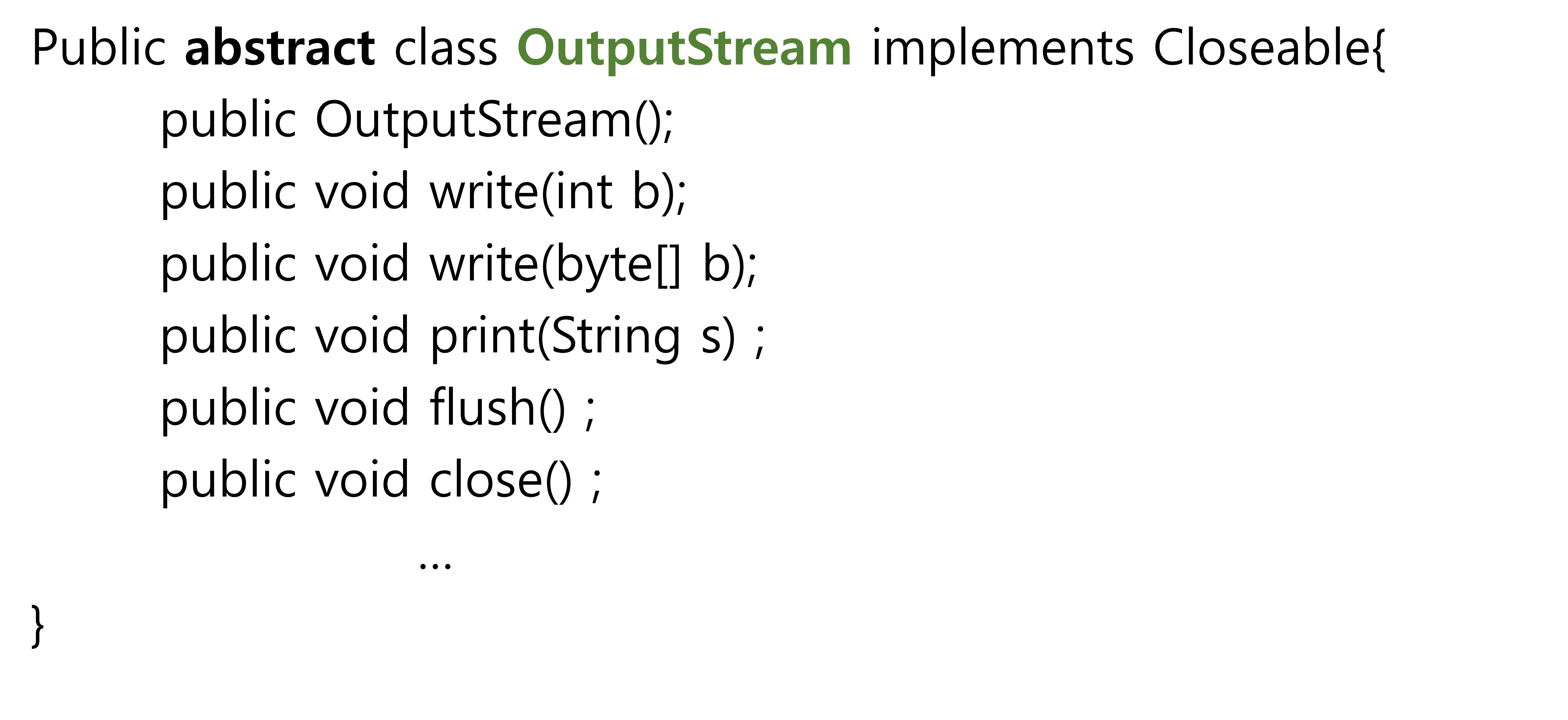 -ByteStream중 출력을 하는 class들은 OutputStream 추상클래스를 상속받아 만들어진다. 모두 OutputStream로 끝난다.