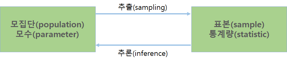 모집단 : 잘 정의된 연구목적과 이와 연계된 명확한 연구대상 (데이터 전체 집합)