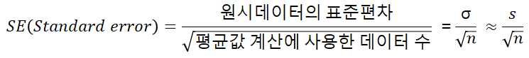 표준오차(SE) : 표본 집단의 평균값이 실제 모집단의 평균값과 얼마나 차이가 있는지 나타낸다.