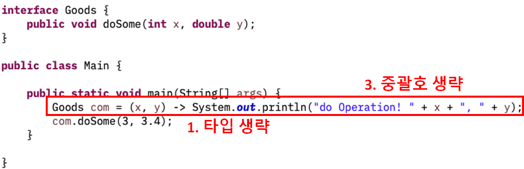1.매개변수 타입을 추론할 수 있는 경우, 타입을 생략할 수 있다.