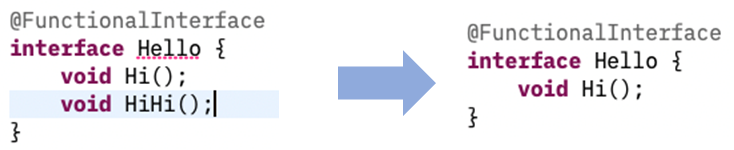 그 이유는, 2개 이상의 추상 메서드를 가질 경우, 컴파일러가 해당 람다식이 타겟 타입의 어떤 메서드를 구현한 것인지 알 수 없기 때문이다.